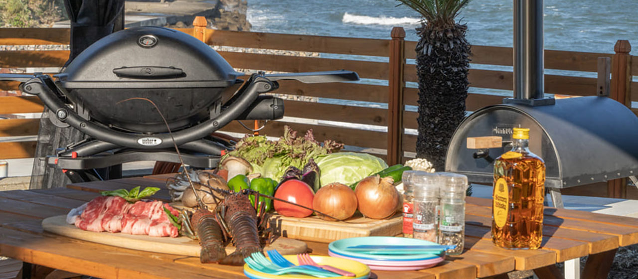 建物と直結したテラススペースでは、BBQをお楽しみいただけます。ガスタイプのBBQグリルをご用意しておりますので、炭お越し不要でお手軽に食材持込でオリジナルBBQをお楽しみいただけます。