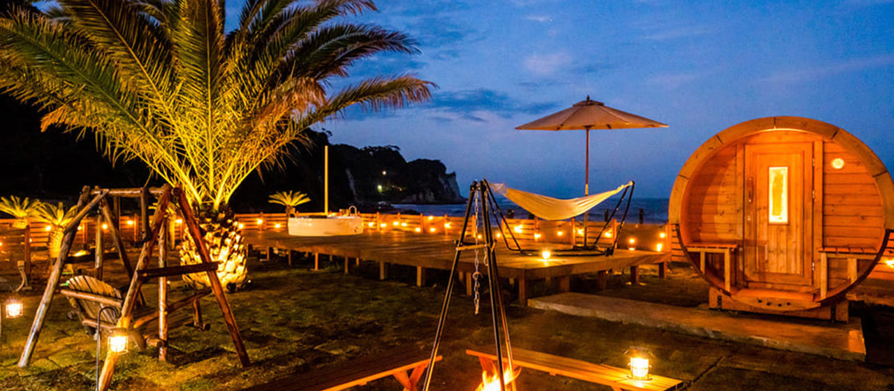 温暖な気候の南房総・いすみ市にオーシャンフロントのプライベートヴィラが誕生。海まで10歩の好立地ならではのマリンアクティビティがお楽しみいただけます。プライベートドッグランとしても使えるガーデンやオーシャンビューのプライベートサウナ、屋外ジャグジーを備えた、ログハウス調の2階建てのプライベートヴィラは、最大収容人数13名と大人数グループでも宿泊も可能となっております。