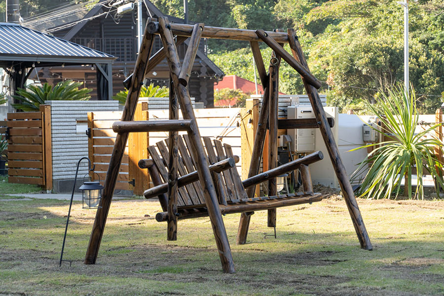 プライベートガーデンにはブランコを配置、愛犬との記念撮影にも
