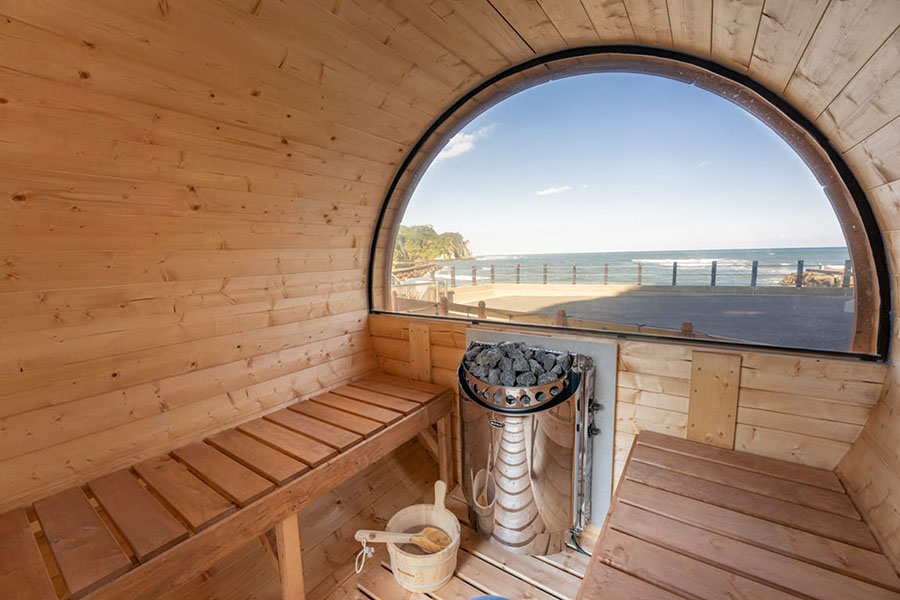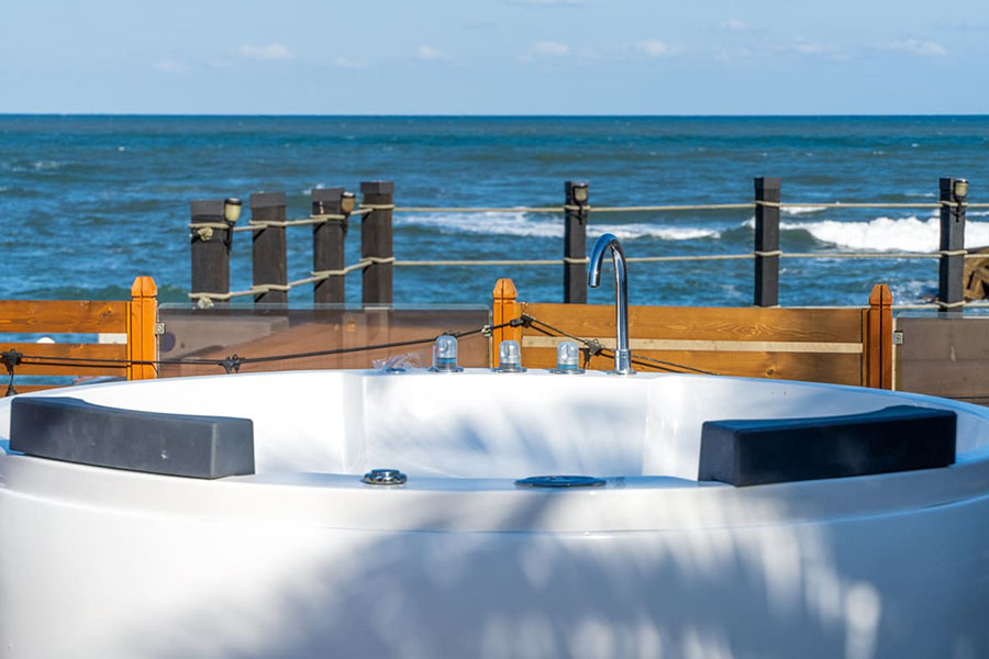 オーシャンビューのウッドデッキテラススペースには、海を眺めながらのととのい体験が楽しめるバレルサウナとラグジュアリーステイを演出するジャグジーを配置。 滞在中はいつでも何度でもご利用いただけますので、オーシャンビューのプライベートSPAを思う存分お楽しみいただけます。