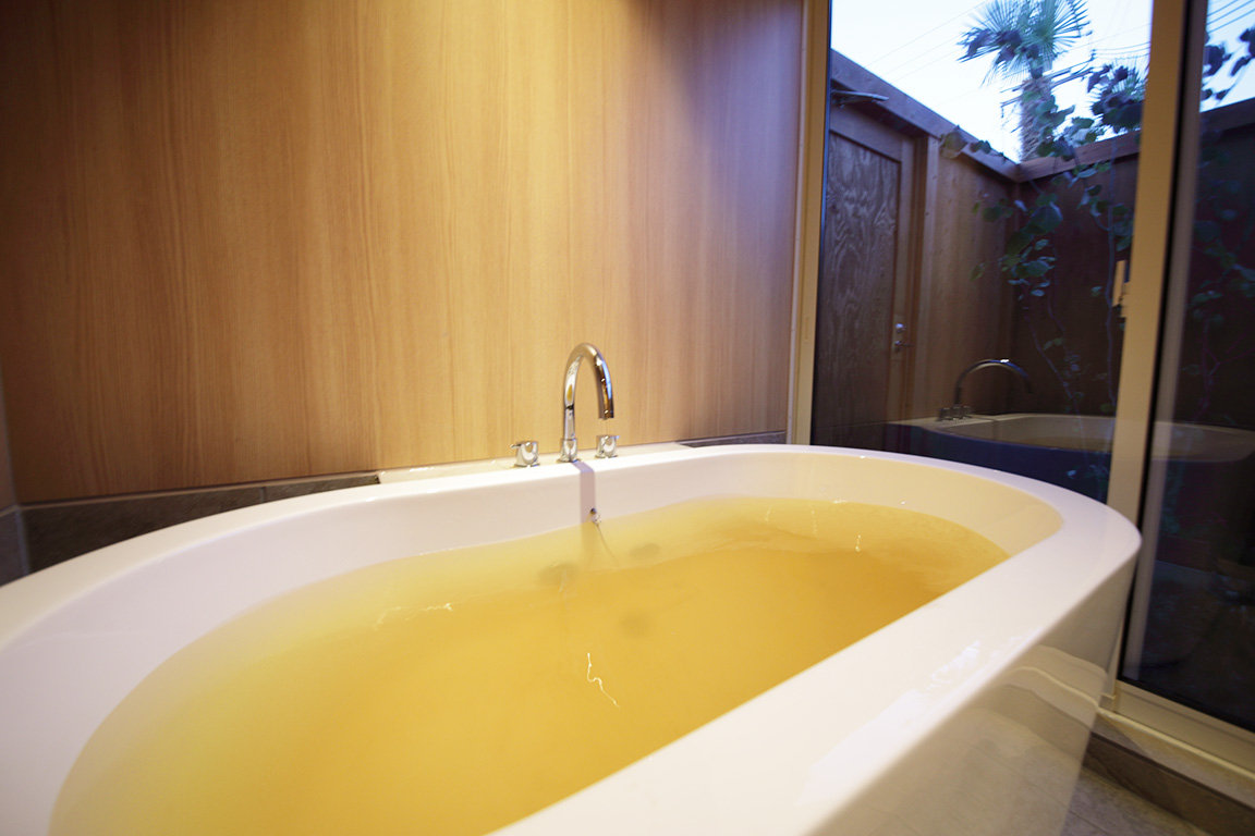 全室に天然温泉「金温泉」を完備しております。人はもちろん、愛犬も入浴できるようになっております。