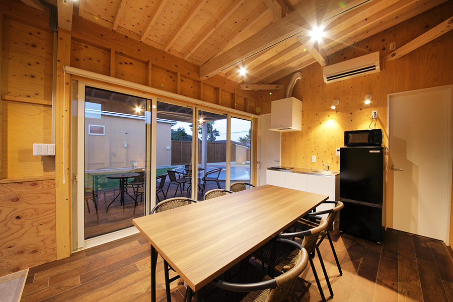 全天候型BBQスペース雨の日も安心・快適にBBQが楽しめる全天候型の食事スペースをそれぞれのお部屋に設置しており、BBQやその土地ならではのお食事を愛犬とともにお楽しみいただけます。