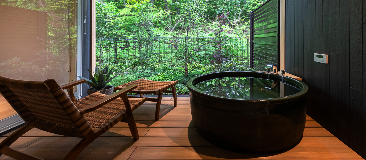 リゾートライクでラグジュアリーなご滞在を求める方への特別空間をご用意いたしました。 70㎡以上の大空間の客室は、一年中快適に過ごせる冷暖房完備の一棟貸切タイプ。専用の食事スペースやキッチンスペース完備と長期滞在も可能な充実の客室設備を兼ね揃え。 専用の天然温泉風呂やサウナルームは24時間お好きなタイミングでご利用ください。