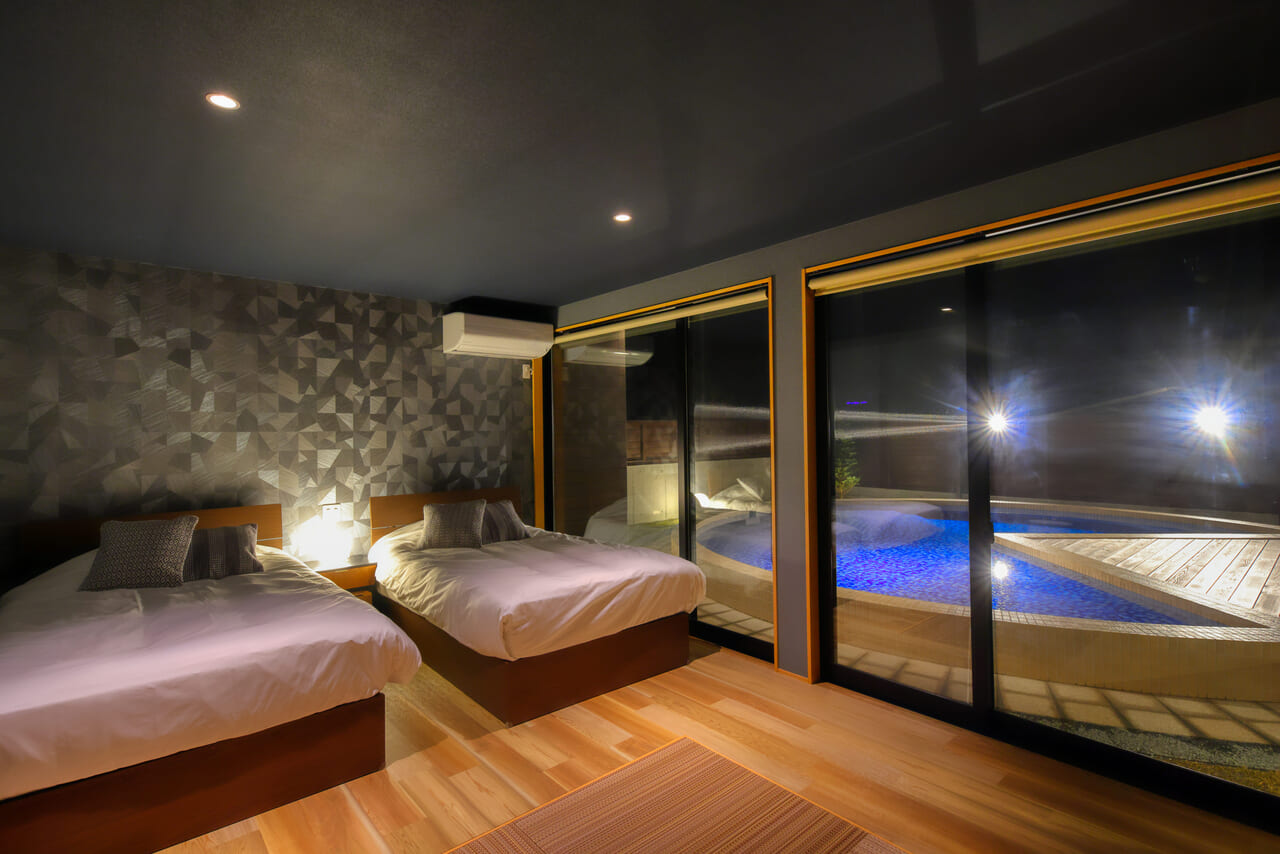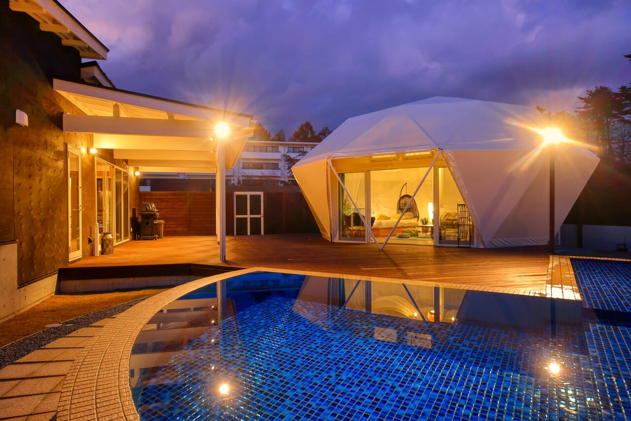 プール・温泉・焚き火を備えた プライベートグランピング