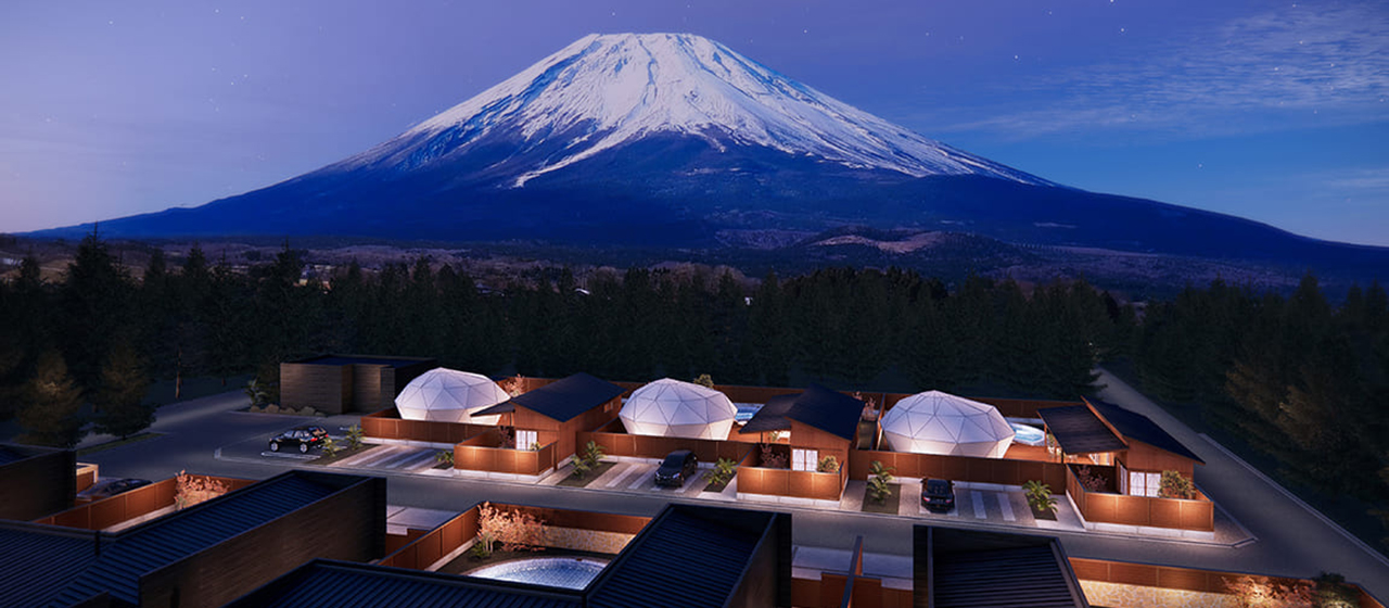 山梨県山中湖エリアの富士山を望む自然豊かな場所に、 客室温泉・プライベートプール・キャンプファイヤー付の 高規格グランピング施設が誕生します。 誰にも邪魔されないプライベート空間と、グランピングならではの非日常を体験する、 「プライベートヴィラグランピング富士山中湖」ならではの滞在をお楽しみください。