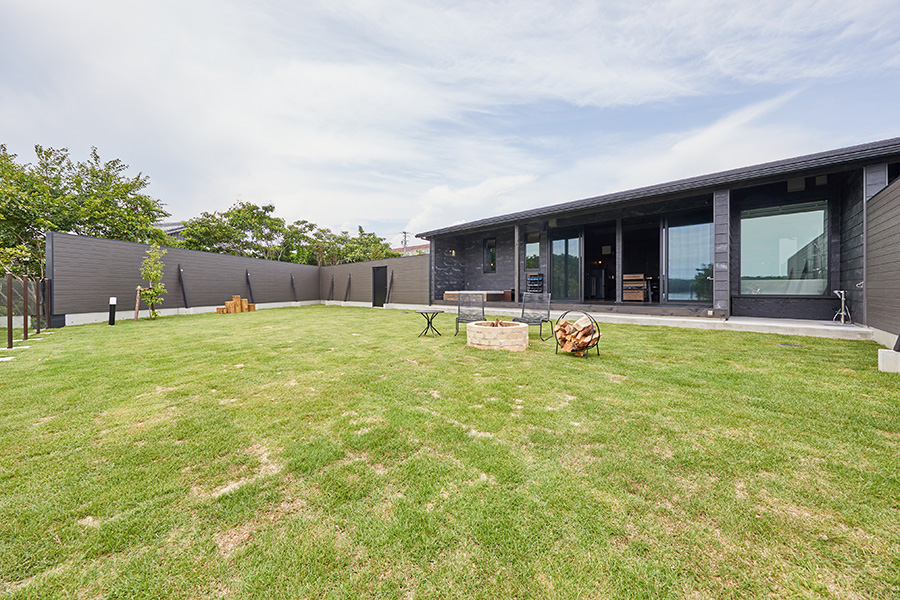 雨の日でも安心してわんちゃんと遊べるよう、屋根付きテラスを備え付け。もちろん晴れの日はプライベートドッグランで思いっきり走り回れます。