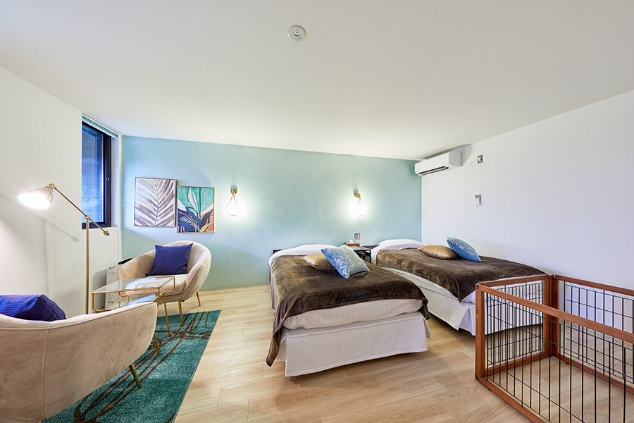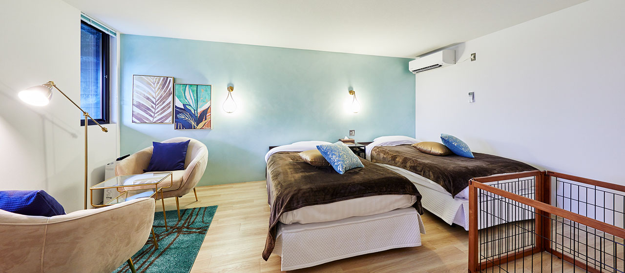 お部屋の広さ、ベッド数、ドッグランスペースの広さが異なります。