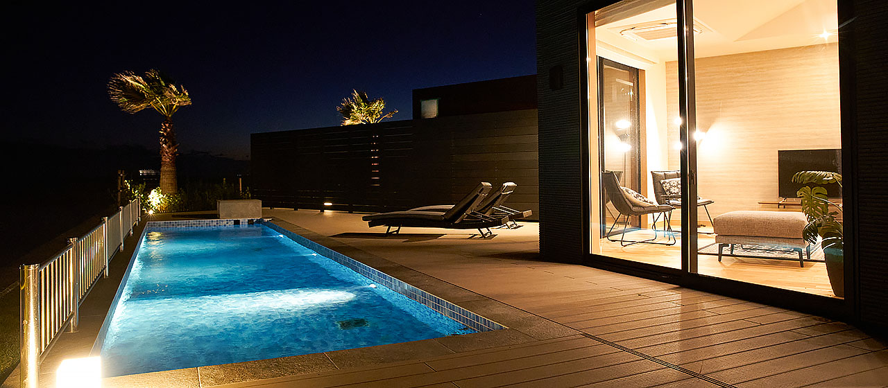 屋外に、8m×3mの長方形型プライベートプールを設置しています。