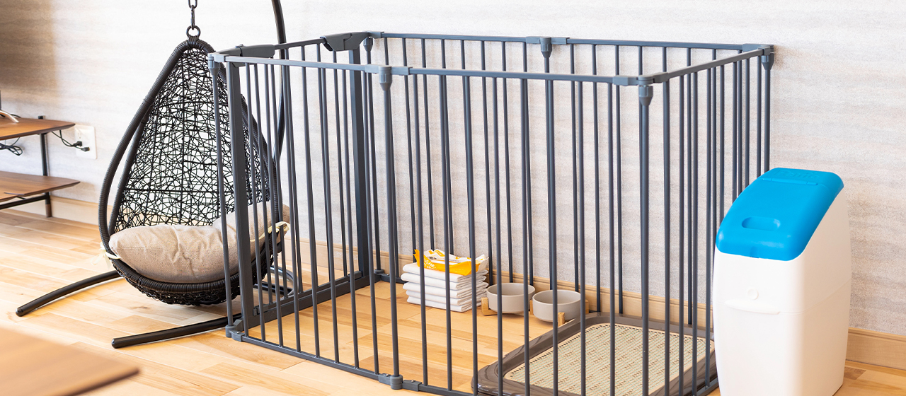 - ケージ(大型犬可)、トレイ、ペットシート、ペット用食器類