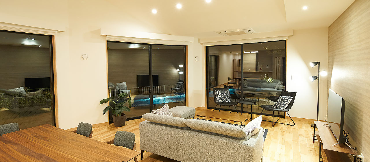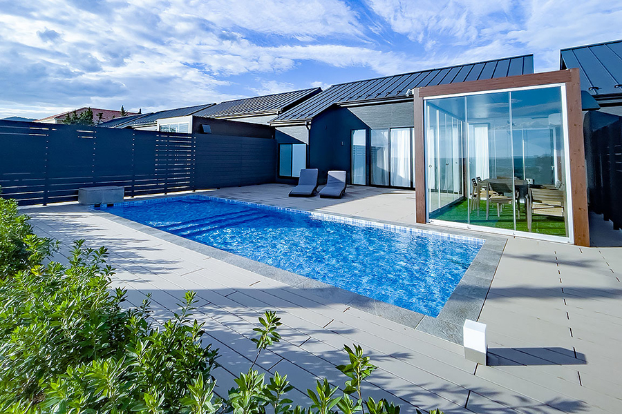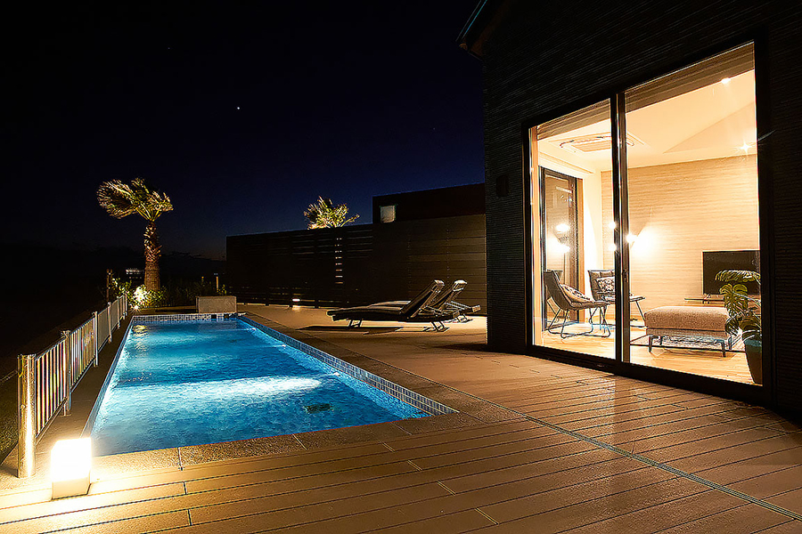 屋外に、8m×3mの長方形型プライベートプールを設置しています。