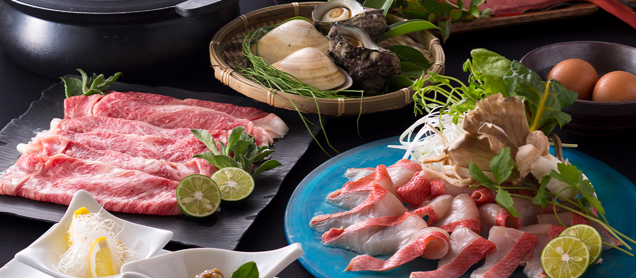 2種のスープで楽しむ、房総金目鯛とかずさ和牛のしゃぶしゃぶ